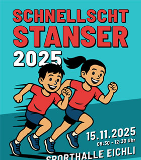 Die Wettkämpfe finden am Samstag, 15. November 2025 von 9.30 Uhr bis ca. 12.30 Uhr in der Sporthalle Eichli, Stans statt. Mitmachen dürfen alle Kinder ab Jahrgang 2021 bis Jahrgang 2013 und bis zur 6. Klasse, die in Stans wohnen und/oder zur Schule gehen. Die Teilnahme am Anlass ist kostenlos. Für Verpflegung ist Dank unserer Festwirtschaft gesorgt.